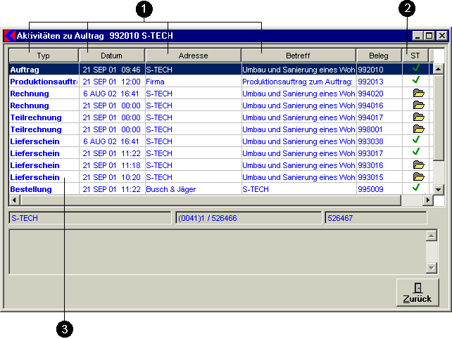 - Im Feld ST - Status ist sichtbar wie weit der Beleg fortgeschritten ist.