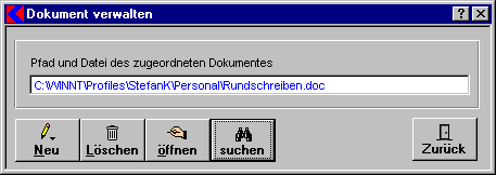 Mit Klick auf die Schaltfläche Dokument können Sie mit dieser Aktivität beliebige Dokumente aus Windows verknüpfen und auch starten (z.B. Textverarbeitungs- oder Tabellenkalkulationsdokumente, CAD-Pläne, etc.).