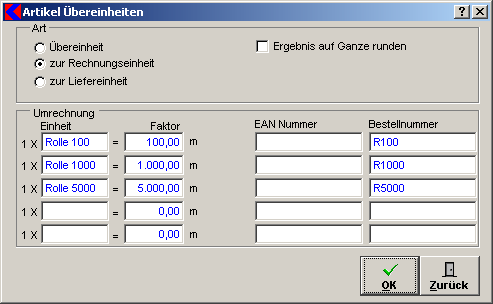 Die Übereinheiten werden benötigt wenn es für einen Artikel verschiedene Verpackungseinheiten gibt.
