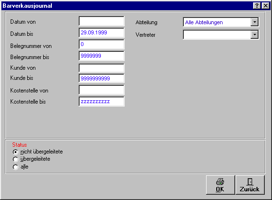 Journale geöffnet. Es dient dem Druck einer Auswahl von Barverkaufsbelegen.