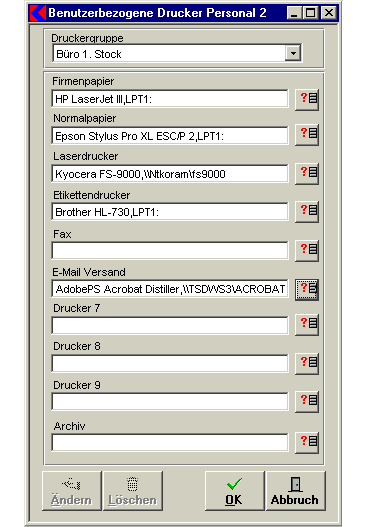 In diesem Fenster können einzelnen Benutzern die einer Druckergruppe zugewiesen werden, einzelen Drucker die z.B.: direkt am Arbeitsplatz stehen zu übersteuern und zuzuweisen.