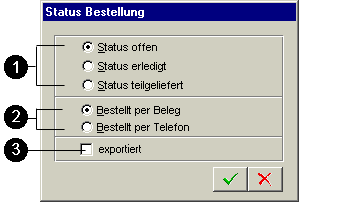 - Bestellt per Telefon: In der Belegeverwaltung erscheint im Status