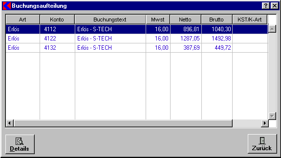 Mit einem rechten Mausklick auf einen Beleg in der Liste sehen Sie die Buchungsaufteilung.