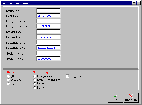 Lieferscheinjournal.