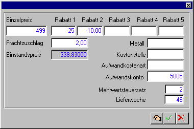 öffnet sich ein Fenster, in dem Sie diverse Informationen zu der markierten Position einsehen und editieren könnnen, z.B. den Einzelpreis, die Rabattstufen etc.