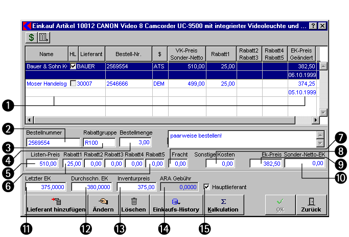 In diese Maske gelangen Sie über die Schaltfläche Einkauf im Artikel-Fenster.
