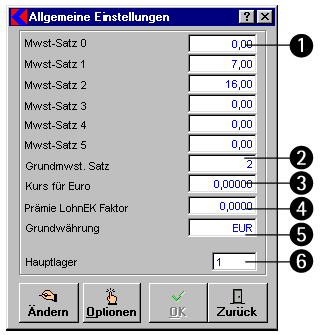 - GrundmwSt.-Satz: In diesem Feld können Sie bestimmen, welchen MwSt-Satz Sie als Standard definieren möchten. Die Zahl 1 steht dabei z.B. für den MwSt-Satz 1 usw.