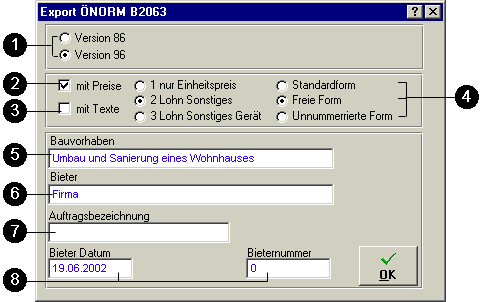 Dieses Fenster finden Sie unter Zusatzmenüpunkte ÖNorm Export B2063.