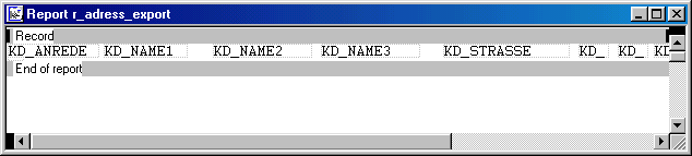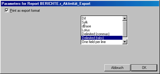 Parameter für den Exportbericht (Menü Modify oder mit F7 aufrufen)