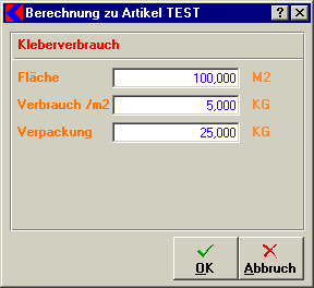 In diesem Fenster werden die benötigten Angaben eingegeben und das Ergebnis in die Menge der Artikelposition übernommen.