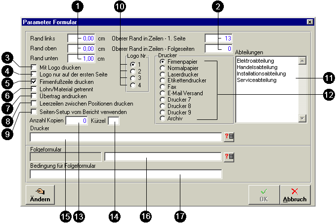 - Logo Nr.: Geben Sie hier an, welches Logo für dieses Formular verwendet werden soll. (Funktion wird nur bei Dokumenten ausgeführt.)