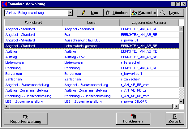 In dieses Fenster gelangen Sie über die Schaltfläche Layout im Fenster Formulare Verwaltung.