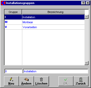 In dieser Maske werden die Installationsgruppen verwaltet.