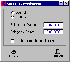 - Mit der Optionsschaltfläche Journal können Sie eine Liste aller Kassenbelege in einem bestimmten Zeitraum drucken.