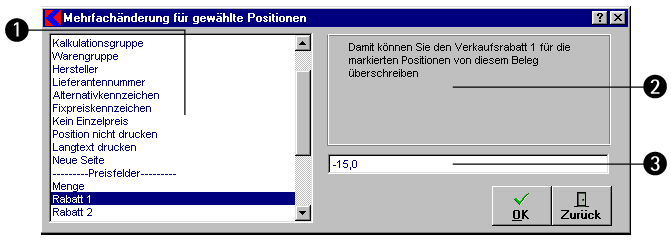 Möchten Sie mehrere Daten einer oder mehrerer ausgewählter Positionen ändern, so können Sie dies über den Menüpunkt Mehrfachänderungen im Kontextmenü tun.