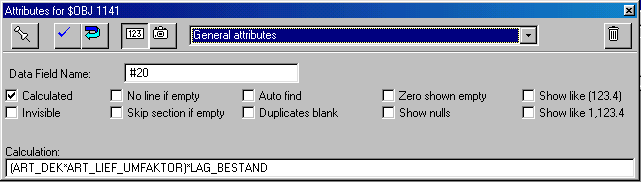 - Data Field Name In diesem Feld steht ein gültiges Omnis-FeldCalculated Wenn dieses Feld aktiviert ist, kann im Feld Calculation eine gültige Omnisberechnung eingegeben werden. Ist wie in diesem Beispiel zusätzlich ein Feld im Data Field Name, wird das Ergebnis der Kalkulation in dieses Feld gespeichert. Dieses Feld kann im Anschluss für weitere Berechnungen verwendet werden