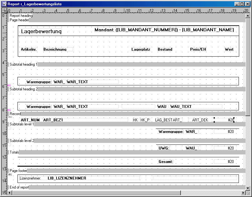 Attribute zu Feld #20 in der Section Subtotal1, Subtotal2, Total