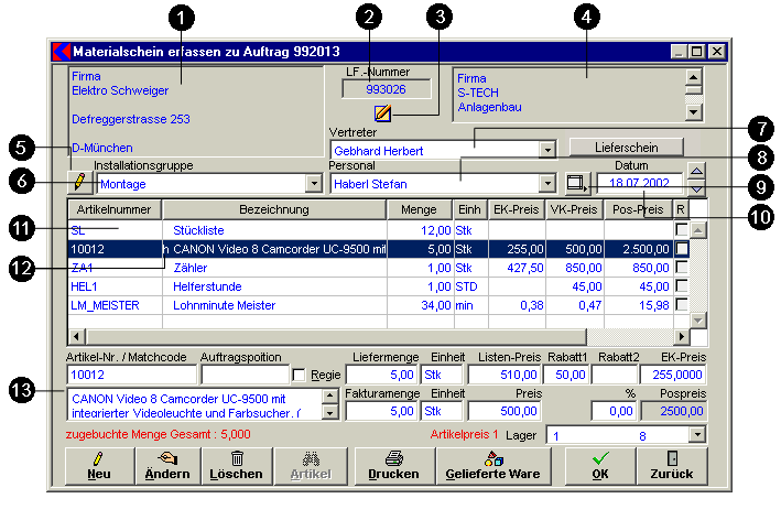 Diese Artikel können Sie mit Doppelklick wieder in den aktuellen Materialschein übernehmen. Siehe auch Gelieferte Ware:.