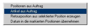 - Auftragsposition Zuweisung mit Klick rechte Maustaste einer Positionsnummer laut Auftrag. Ein Kontextmenü wird geöffnet und die richtigte Position ist auszuwählen.