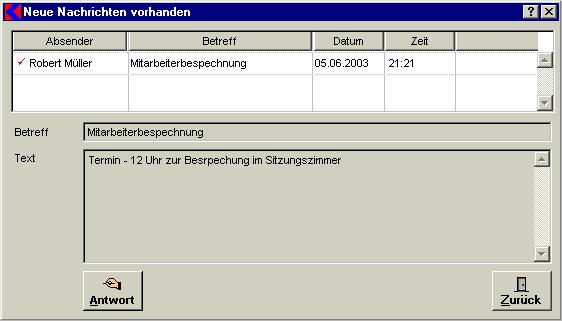 Mit der Schaltfläche Antwort kann den Absender geantwortet werden.