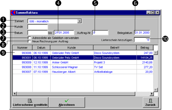 Die Sammelfaktura wird benötigt, um aus nicht abgerechneten Lieferscheinen einzelne, alle oder selektive Rechnungen zu erstellen.