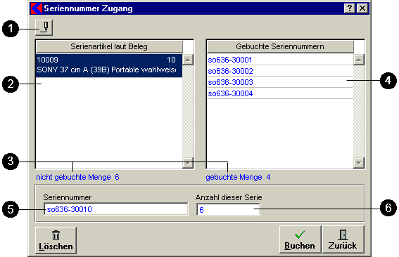 - Im Eingabfeld Anzahl dieser Serie: Hier ist die Anzahl der Artikel einzugeben, die fortlaufend mit der eingegebenen Seriennummer gebucht werden.