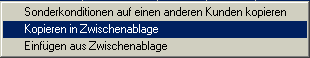 Hier sind die Sonderkonditionen auf eine anderen Kunden zu kopieren. Mit Klick öffnet sich die Adressuche und der gewünschte Kunde kann ausgewählt werden. Mit Kopieren und Einfügen können einzelnen Sonderkonditionen einen anderen Kunden kopiert werden.