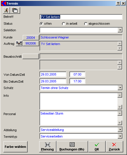 - Der Termin ist einem Auftrag zugeordnet