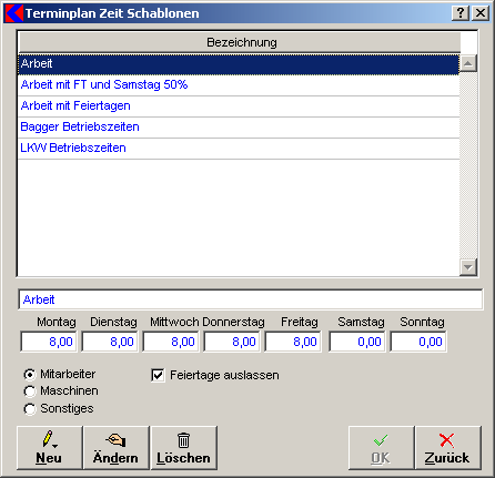Die Kapazitätenplanung greift auf diese Informationen zurück. Für den normalen Terminplaner sind diese Informationen nicht von Bedeutung.