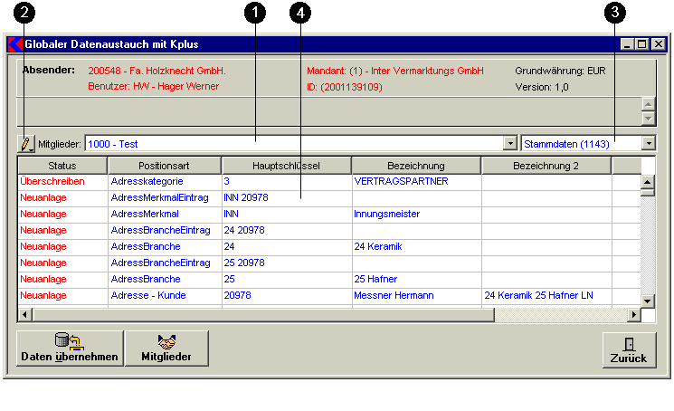 Status: Der Status zeigt, ob der Datensatz bereits vorhanden oder neu ist. Neuanlage oder Überschreiben